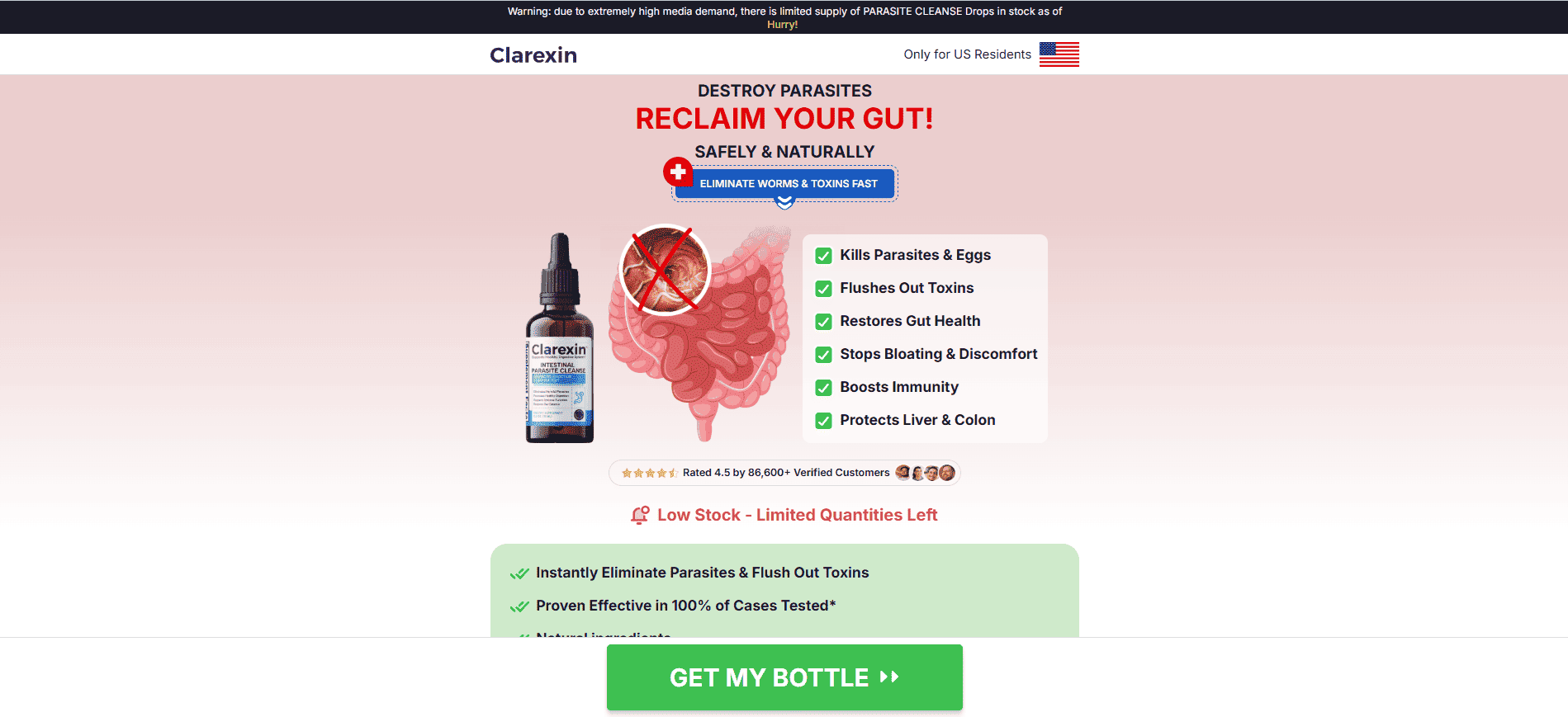 This special offer includes Free Shipping on all orders placed today. When you choose the 3-bottle package of Clarexin, you will automatically receive 2 additional pots of Colon Cleanse as a free bonus to enhance your wellness journey.